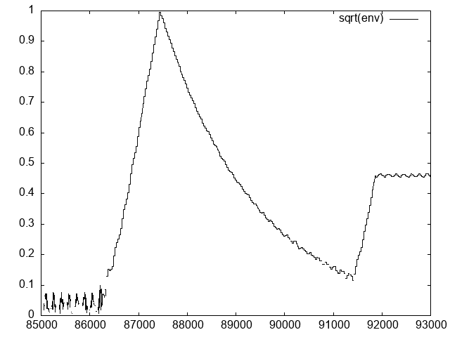 gnuplot> plot [86000:88000][-.1:1] ’envtest0.plt’
